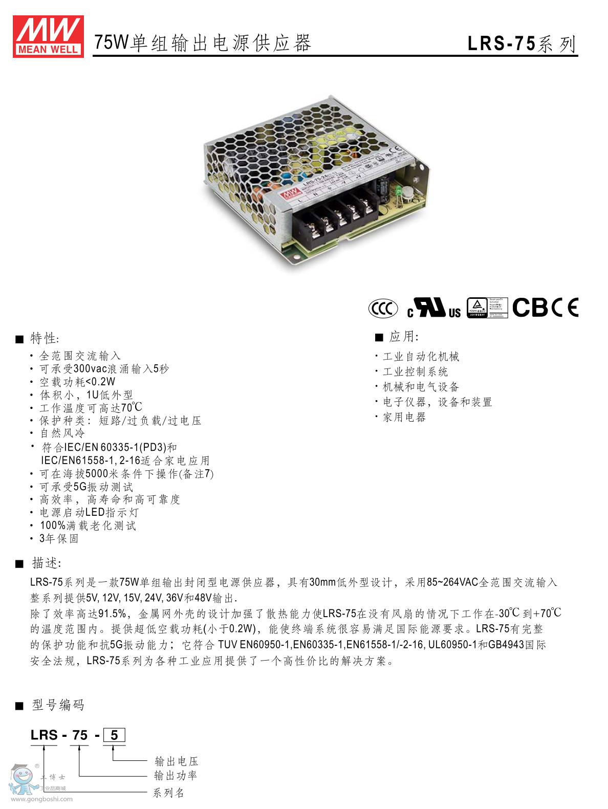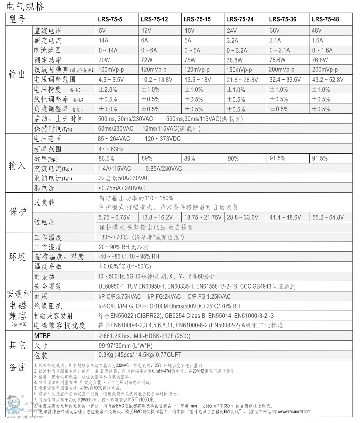 明緯開關電源LRS-75-48 48V1.6A超薄系列
