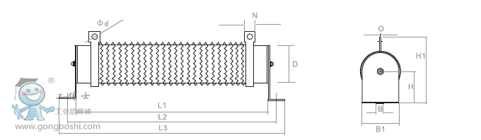 在圓柱形的陶瓷管上固定了兩個引出端子,瓷管表面上纏繞了扁帶波浪形狀的合金電阻絲,并在其表面涂覆一層具有阻燃,耐高溫特性的涂層,涂料為無機材料,環保、無煙、無異味。陶瓷管作為電阻絲骨架的同時,又具有散熱器的功效。本品可按照客戶的要求定制。本品適用于模擬負荷實驗,設備放電,自動控制,變頻器能耗制動等。