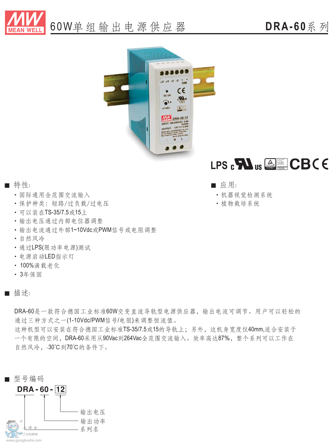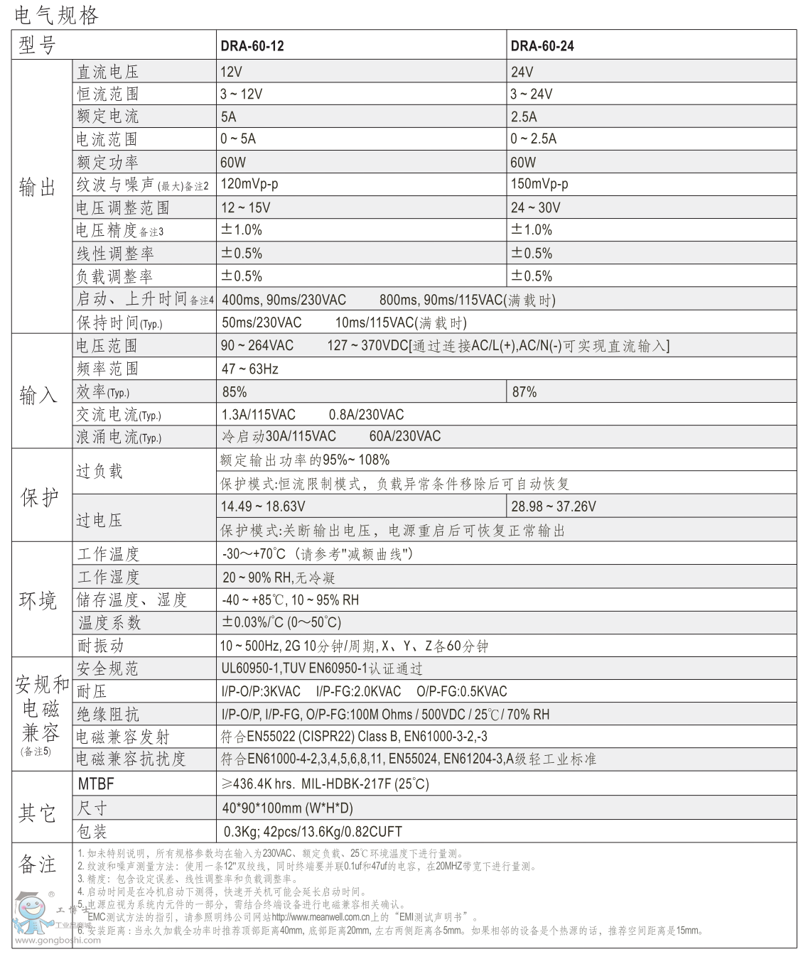 臺灣明緯導軌電源DRA-60-12 12V5A