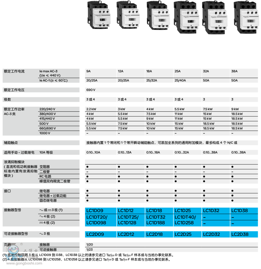施耐德LC1D475M7C 3極交流接觸器AC220V