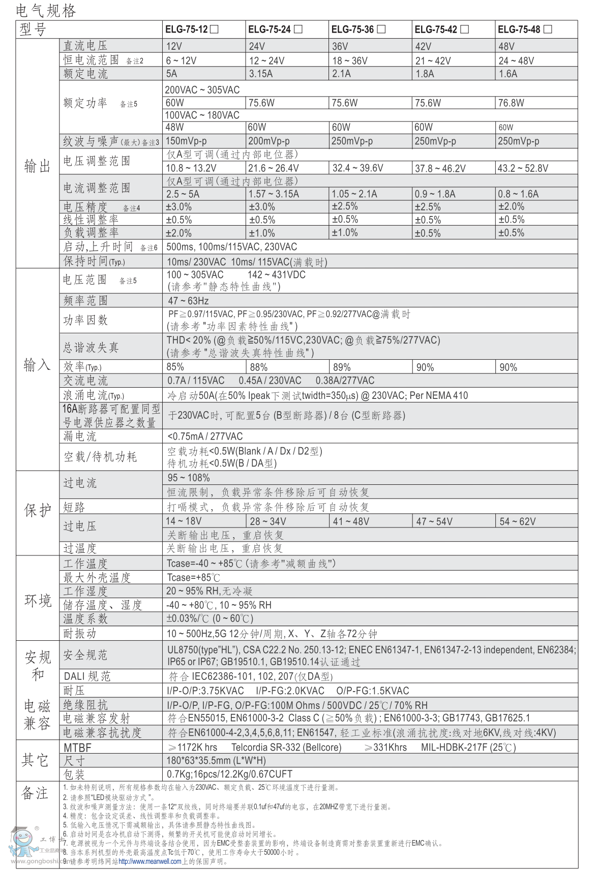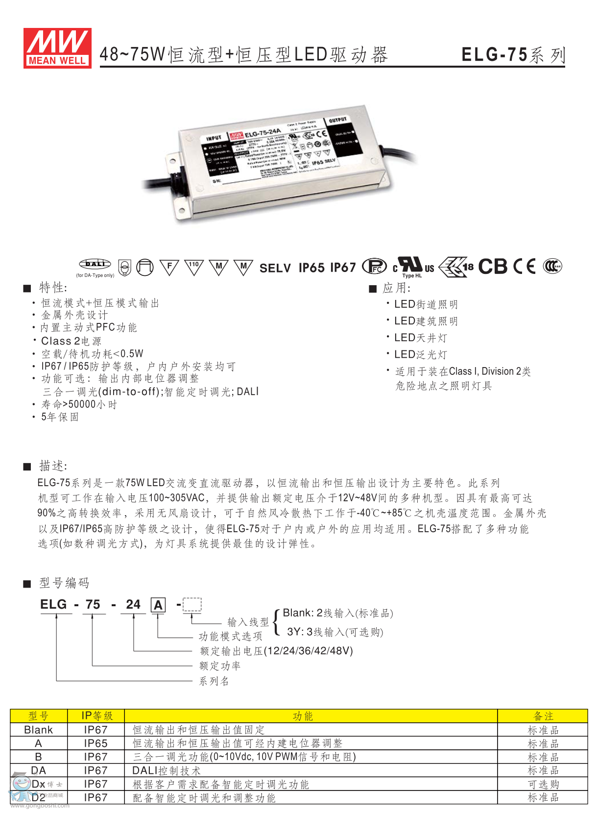 臺灣明緯LED防水電源ELG-75-36A 75W36V2.1A