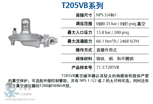 Fisher費希爾 T205VB,T205VBM 真空破壞器