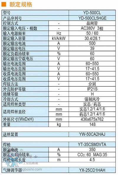 4、負載持續率,可實現大電流、粗焊絲高速焊接。