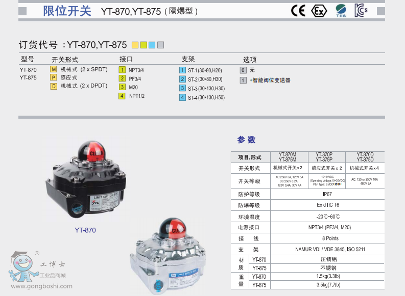 YTC(ROTORK) YT-870 限位開關 (隔爆型)