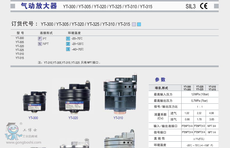 特 點 按1:1壓力提供空氣,所以速度及準確性非常好。 通過調節旁通可提高系統的穩定性。 對輸入信號的微小變化,響應非常靈敏。 產品口徑大,流量大。