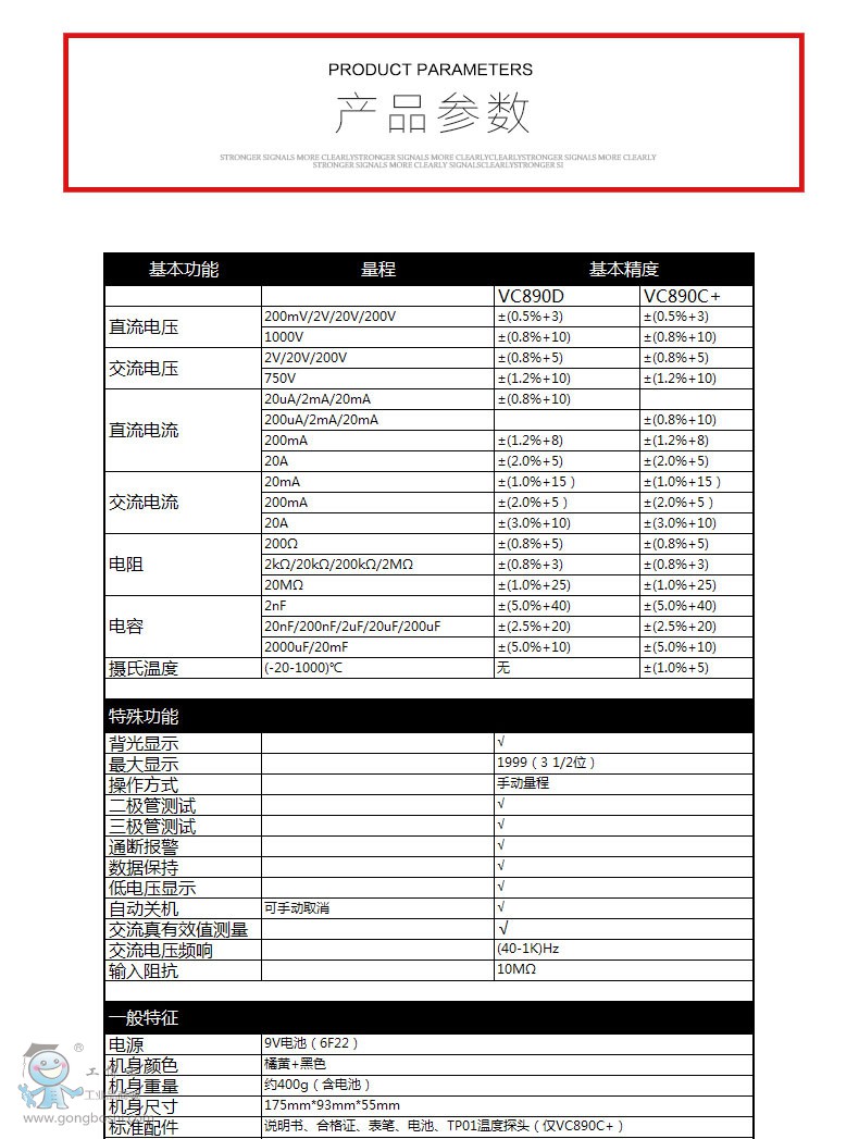 勝利數(shù)字萬用表VC890D 手動量程 顯示為數(shù):3 1/2位