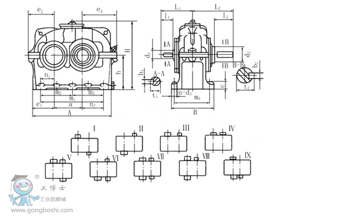 按國家標準JB/T8853-2001生產的外嚙合漸開線斜齒圓柱齒輪減速機。