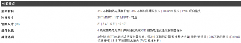 派克 PGI Thermosync® 熱電偶護(hù)套R(shí)TD 總成使用防爆接線盒,在盒內(nèi)撲滅火花,避免火花濺射到周邊易燃材料和環(huán)境中,使ThermoSync 熱電偶護(hù)套和RTD 探頭適用于危險(xiǎn)場合。鋁質(zhì)接線盒接帶½” NPT電線接口。熱電偶護(hù)套與接線盒連接件標(biāo)準(zhǔn)材料為PVC 聚氯乙烯和 Delrin,不銹鋼材料可選。所有配置可預(yù)裝配,安裝簡易、快速。