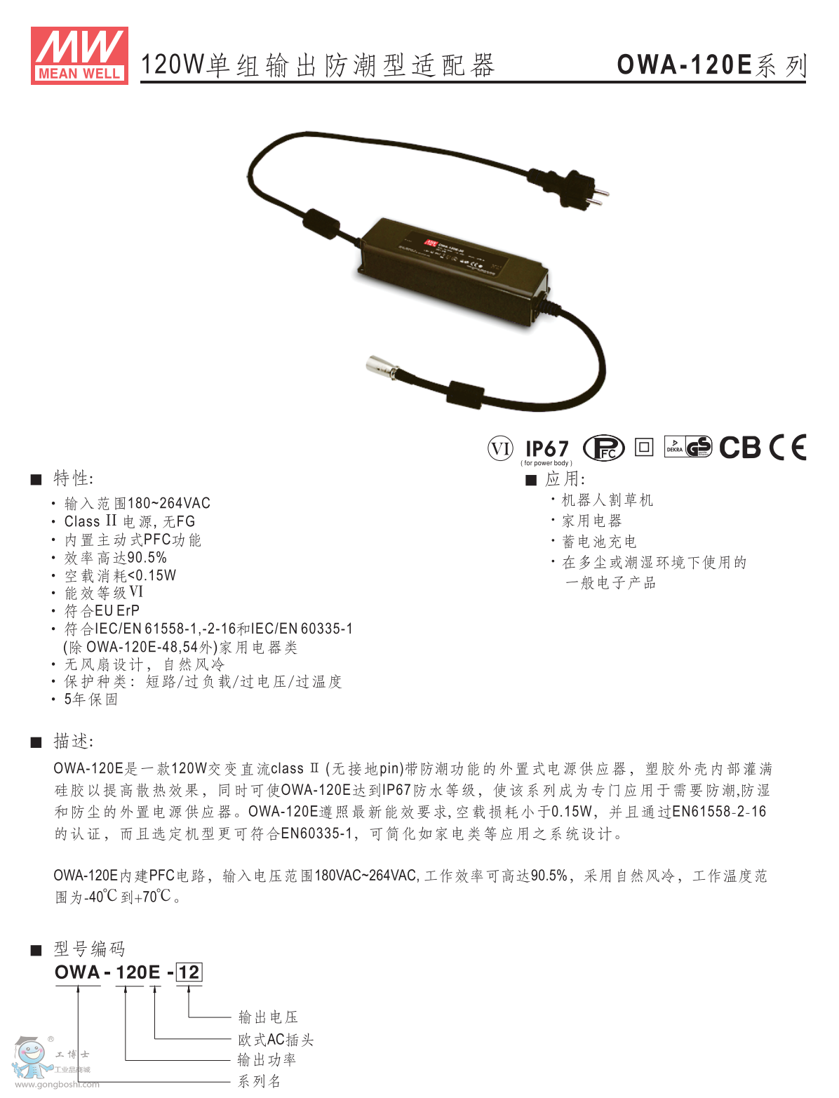 E型: 符合EU ErP 及 CoC Version 5 (OWA-120E 僅符合EU ErP) U型: 符合EISA 2007/DoE 及 NRCan