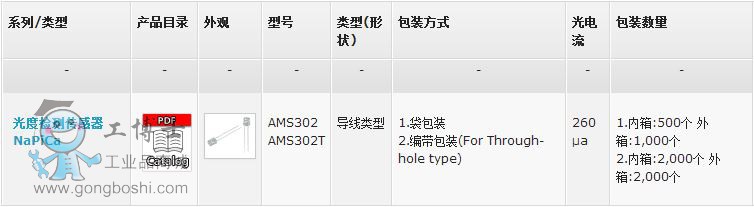 光源:熒光燈 反向電壓:5V(AMS302) 環境溫度:25℃
