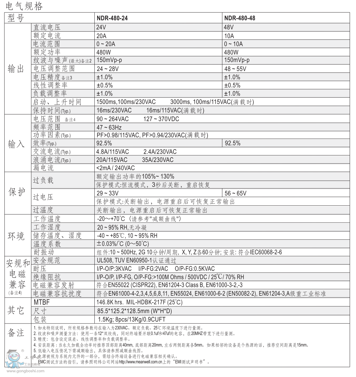 臺灣明緯導軌電源NDR-480-48 48V10A