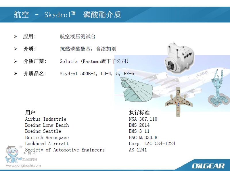 抗燃磷酸酯基,含添加劑 航空–Skydrol™ 磷酸酯介質