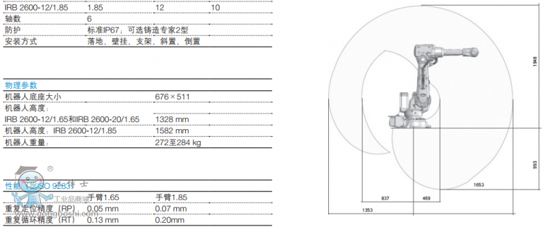ABB弧焊機器人 IRB 2600-12/1.85臂展1.85M負載12公斤弧焊、裝配、清潔/噴霧