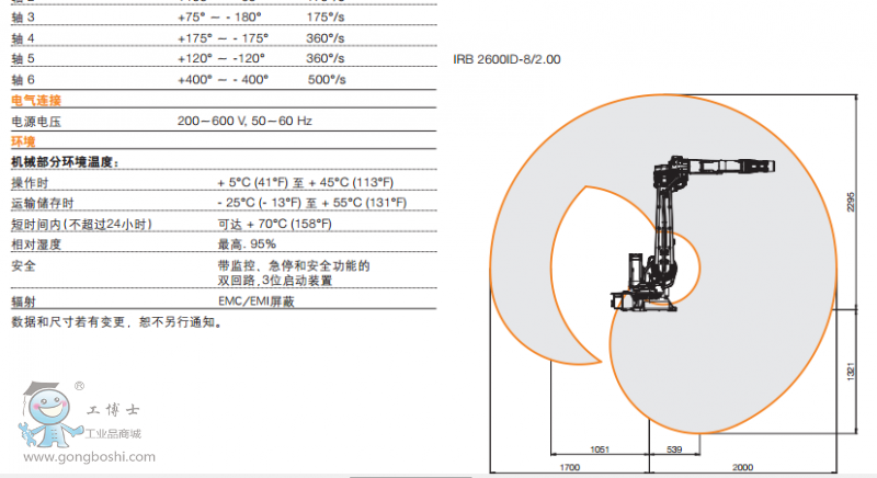 ABB機器人弧焊機器人IRB2600ID-8/2.00負載8公斤臂展2米點焊機器人