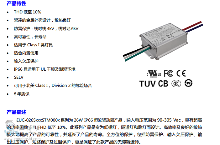 EUC-026S070STM0004英飛特戶外驅動LED電源