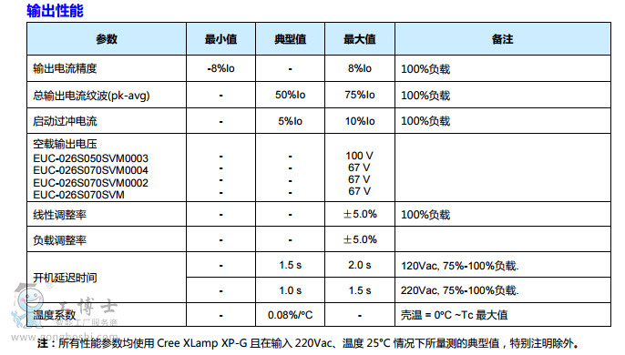 注:所有性能參數(shù)均使用 Cree XLamp XP-G 且在溫度 25°C 情況下所量測(cè)的典型值,特別注明除外。