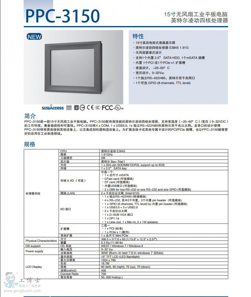15寸無風扇工業平板電腦,英特爾凌動四核處理器