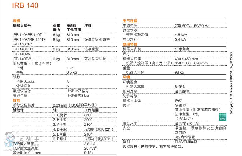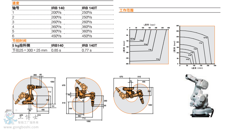 ABB工業機器人IRB 140 小型工業機器人IRB 140T弧焊|去毛刺|包裝搬運機器人