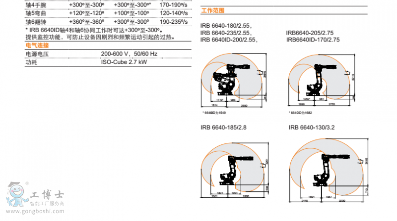 IRB6640ID-200 2.55m 200kg IP67鑄造專家,潔凈室ISO 5級(jí)