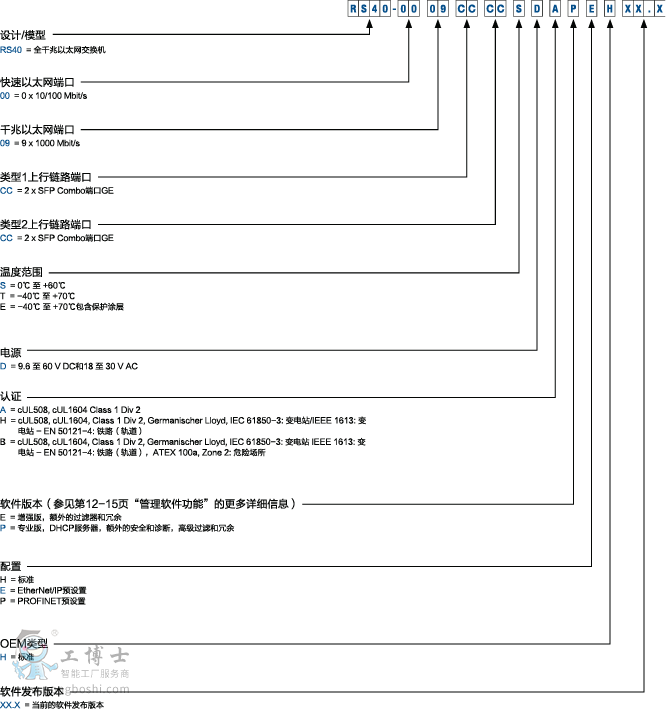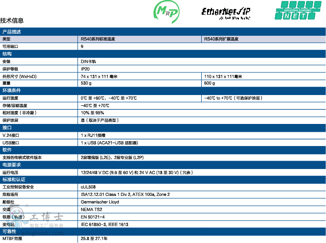 RS40緊湊型OpenRail可網管以太網交換機有9個千兆端口,該交換機可以提供5*10/100/1000RJ45和4*100/1000RJ45/SFP Combo端口(每使用一個SFP,對應一個RJ45端口自動禁用)。多模和/或單模中光纖上行鏈路端口均可用,使用千兆貨100Mbps SFP收發器。
