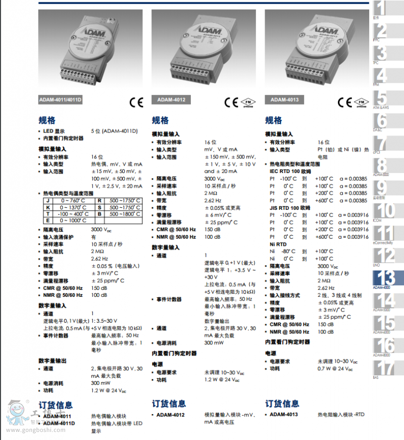 模擬量輸入模塊使用微處理器控制整合A/D轉(zhuǎn)換芯片,將電壓、電流、熱電偶或者熱電阻信號轉(zhuǎn)化為數(shù)字量信號。然后根據(jù) 模塊的設(shè)置將數(shù)字量表示為工程單位、16進(jìn)制格式或者滿量程的百分比。當(dāng)主機(jī)請求的時(shí)候,數(shù)據(jù)通過 RS-485 界面?zhèn)鬏敗DM量輸入模塊提供信號調(diào)理、A/D轉(zhuǎn)換、量程轉(zhuǎn)化和 RS-485數(shù)字通訊功能。通過提供 A/D輸入光偶隔離和高達(dá)3000V的變壓器隔離,模塊可以保護(hù)用戶設(shè)備免受接地環(huán)流和電源浪涌的危害。