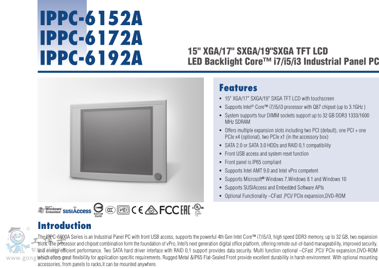 品牌: ADVANTECH/研華                   型號:IPPC-6152A-R1BE/E8400                               類型:工業平板電腦