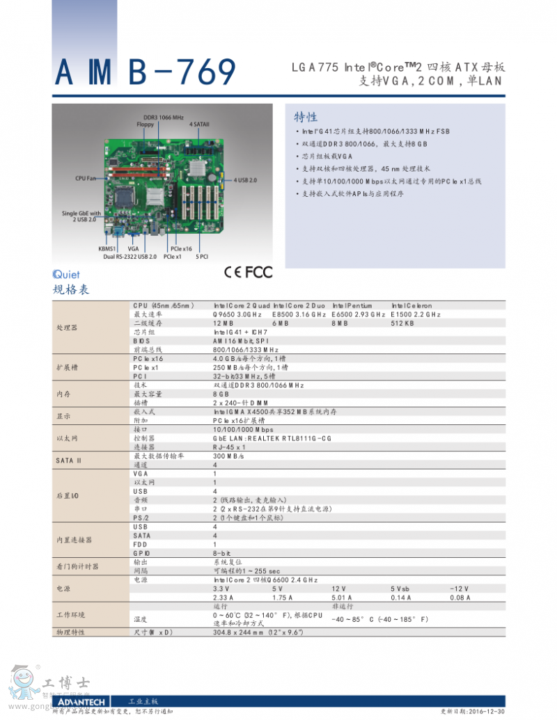 LGA775 Intel 酷睿2四核ATX母板,支持VGA, 2 COM, 單LAN