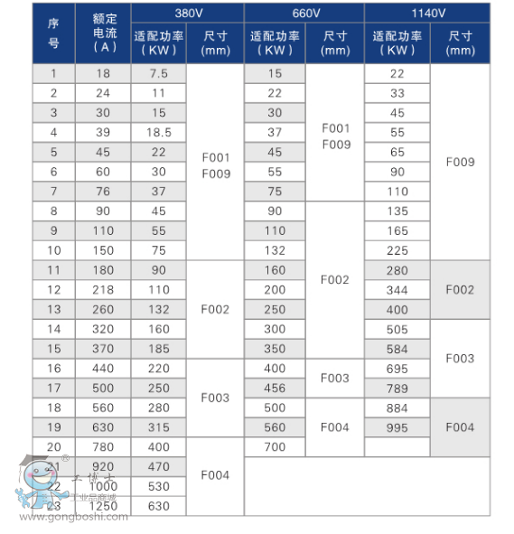 5、電機的保護:多種電機保護功能(如過流、輸入/輸出缺相、晶閘管短路、過熱保護等。