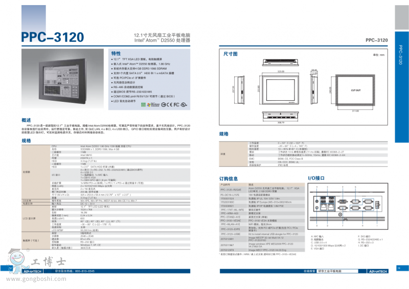 12.1" 無風扇工業平板電腦 Intel®Atom™ D2550 處理器