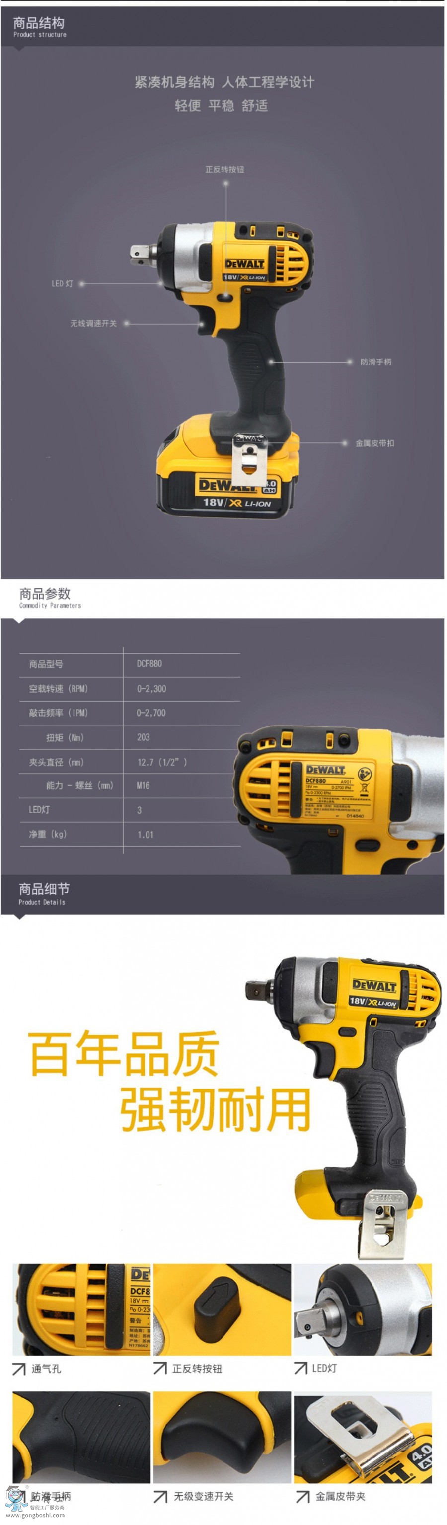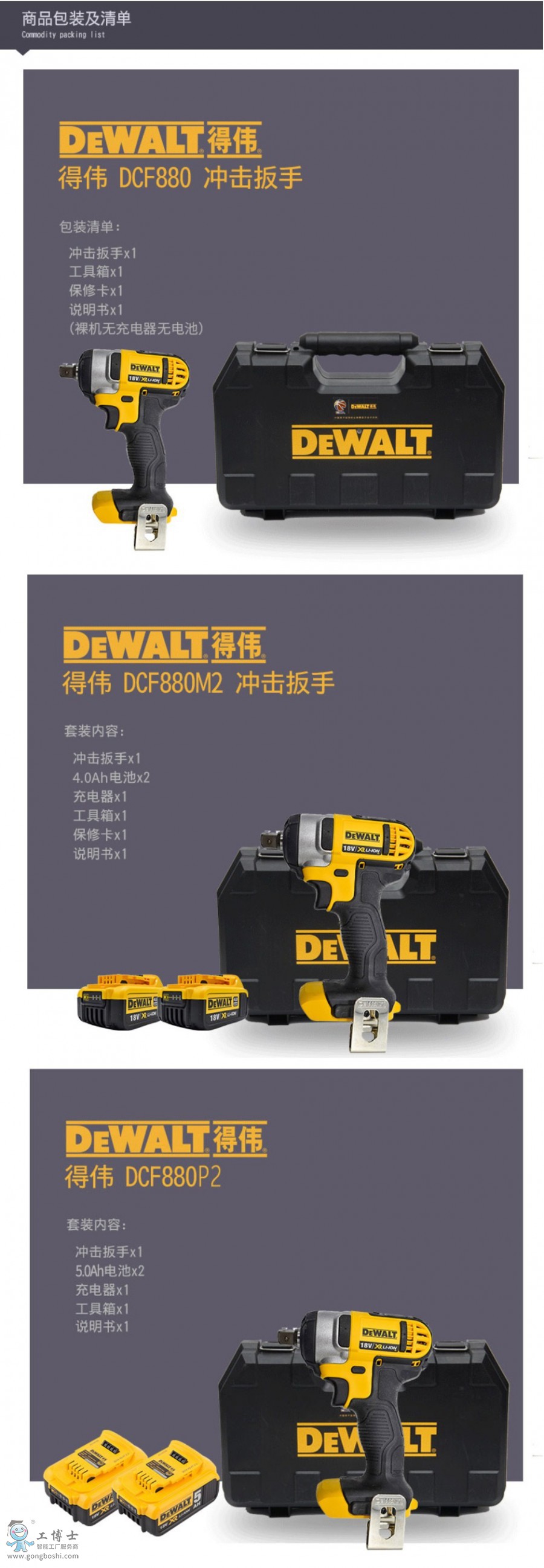 史丹利DEWALT得偉 鋰電充電式?jīng)_擊扳手18V DCF880M2