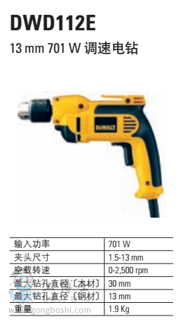 史丹利DEWALT得偉 調速電鉆 13mm701W調速電鉆