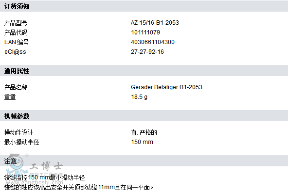 德國schmersal/施邁賽安全開關操作件AZ15/16-B1-2053