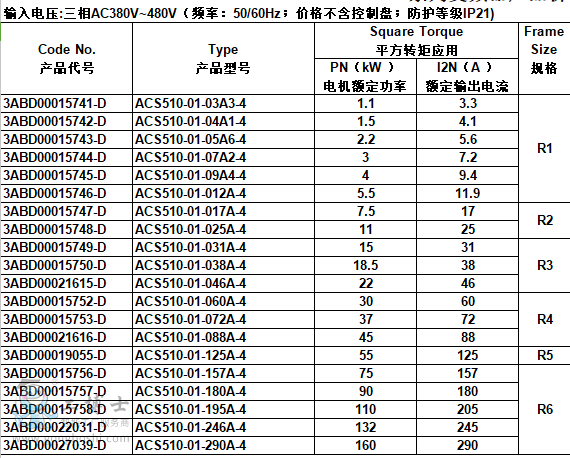 3KW ACS510-01-07A2-4 風(fēng)機(jī)水泵ABB變頻器