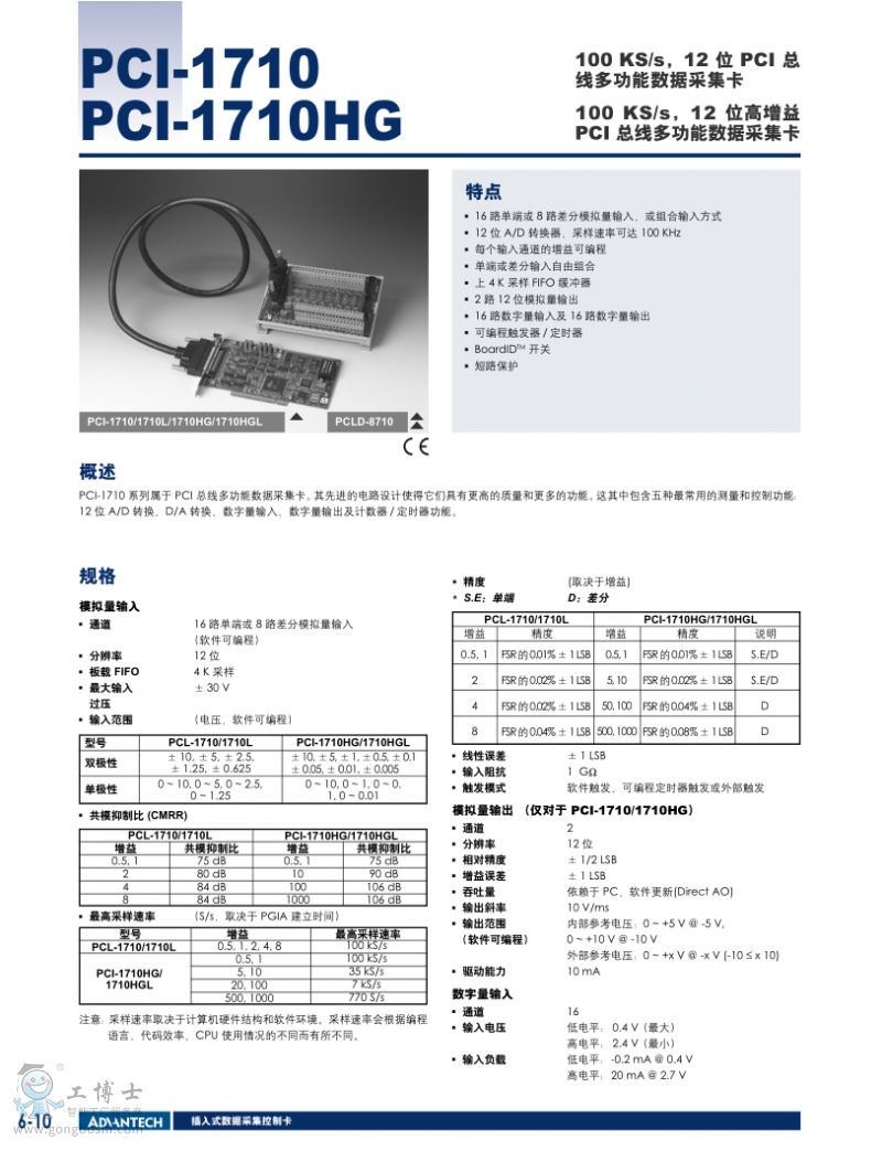 品牌: ADVANTECH/研華              型號:PCI-1710               類型:數據采集卡