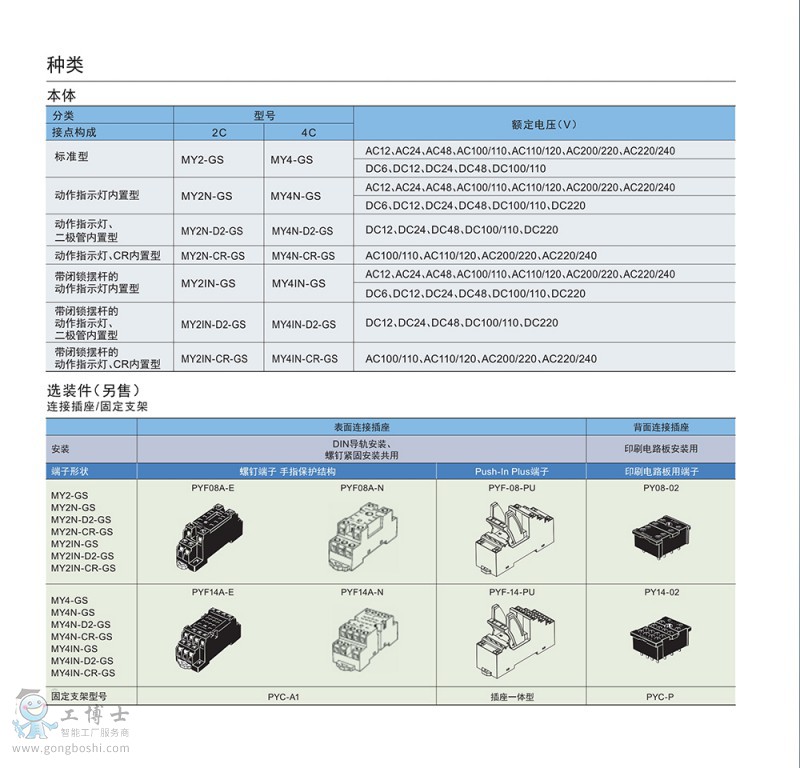OMRON 歐姆龍標(biāo)準(zhǔn)型 帶動(dòng)作指示燈 微型功率繼電器 MY2N-GS AC100/110