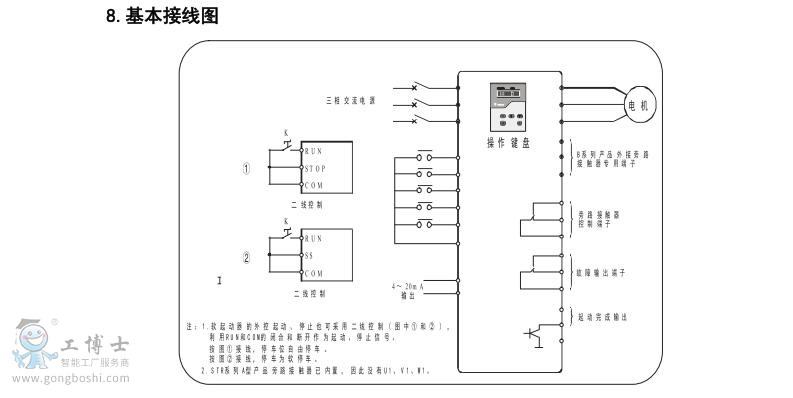 STRG系列電動機軟起動控制柜是以STRB軟起動器為核心起動元件成套的軟起動控制裝置,軟起動柜內配置了三相電源進線斷路器、旁路接觸器、預留了遠程控制的接口端子,柜門上配有起動、停止按鈕及運行、停止、故障指示,同時還配有電流表及電壓表,以顯示電源電壓及電機運行電流。STRG系列產品可直接安裝使用。其接線原理圖見下圖