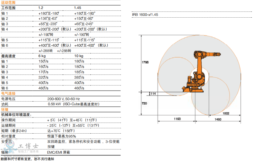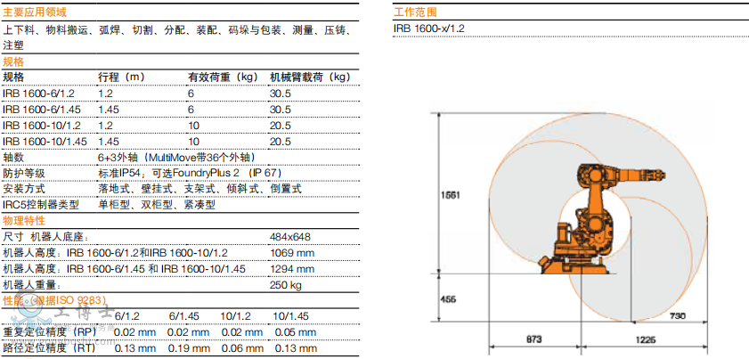 ABB機器人 IRB 1600 性能*高的10公斤機器人。