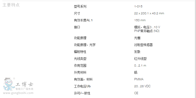 接口: 模擬,電壓0...10 V PNP常開觸點(diǎn) (NO)