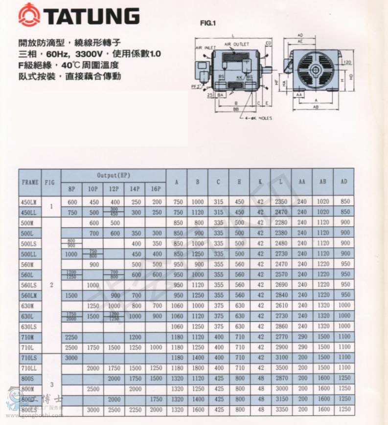 頻率/電壓: 60HZ 3300V