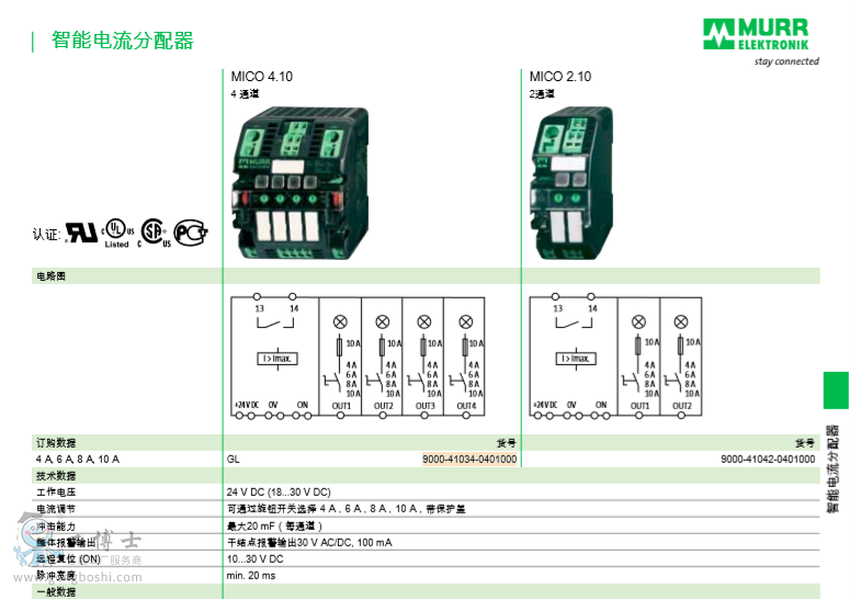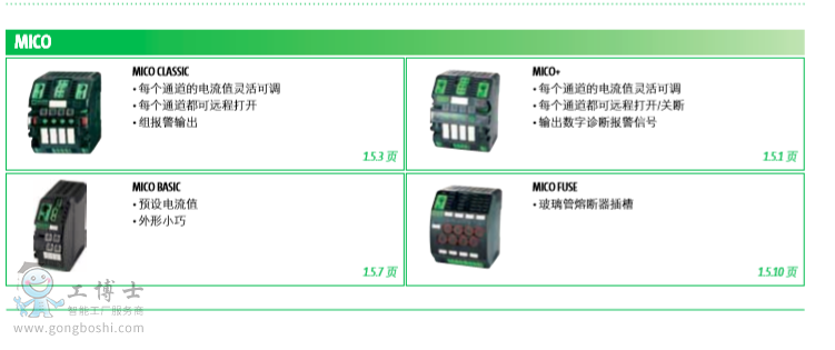 來自穆爾電子的 MICO 是針對24 V DC的智能電流分配模塊。它監測電流,當通道內的負載接近*大值時可即 時顯示并輸出報警信號,當其中某個通道過載或短路時,能夠將發生問題的通道關閉,并保留其它通道繼續運 行。從而確保了系統*大可運行范圍。 (MICO 智能電流分配器:監測 檢測 及時響應)
