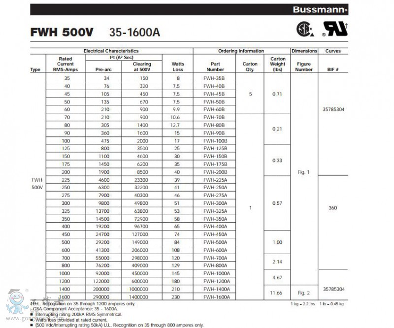 巴斯曼快速熔斷器 FWH-325A 保險絲 Cooper Bussmann |