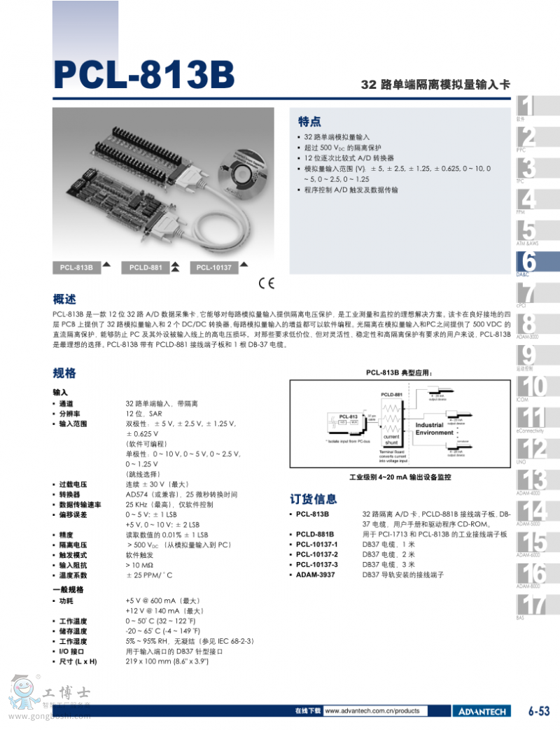 品牌:ADVANTECH/研華           型號:PCL-813B           類型:32路單端隔離A/D卡