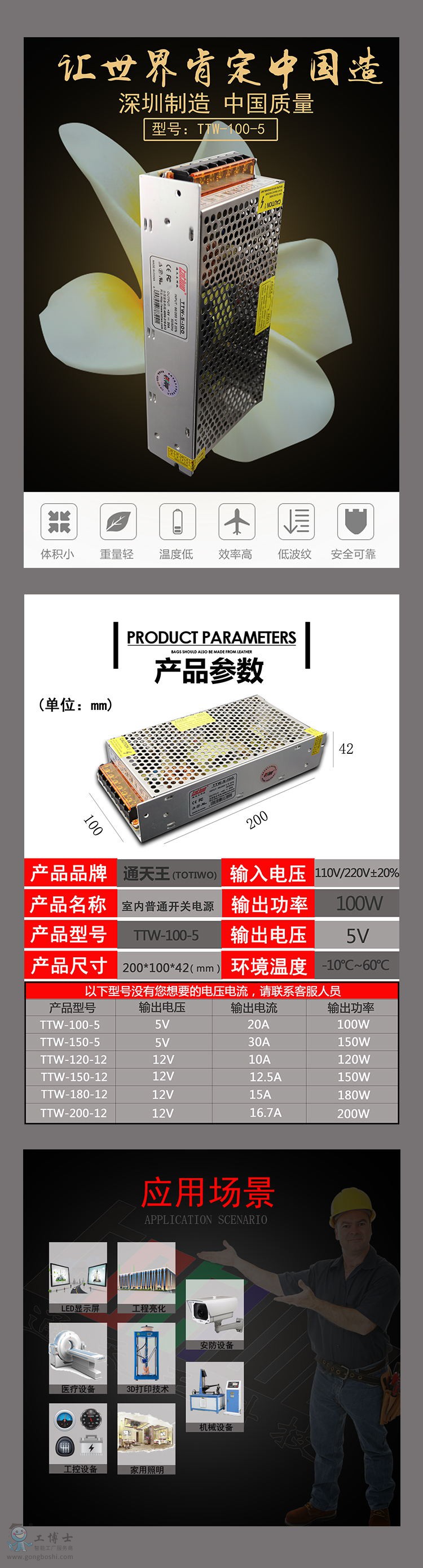 交流輸入轉換由開關選擇,具有過流短路保護功能 自冷散熱 、集成電路,100%滿負荷燒機測試,低價位、高可靠,特別為LED電子顯示屏供電設計