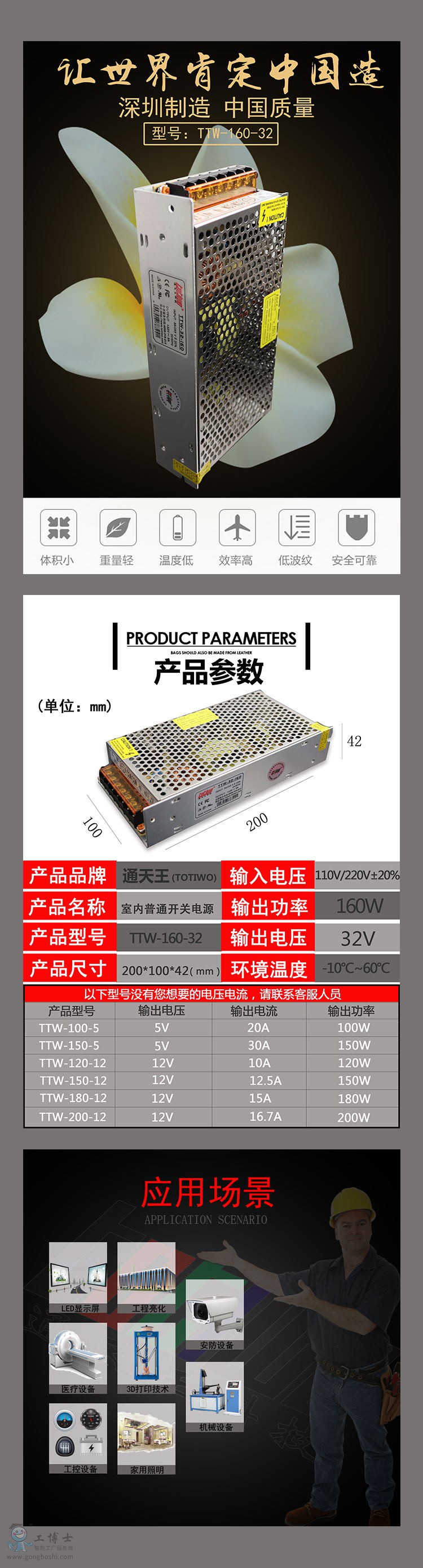交流輸入轉換由開關選擇,具有過流短路保護功能 自冷散熱 、集成電路,100%滿負荷燒機測試,低價位、高可靠,特別為LED電子顯示屏供電設計