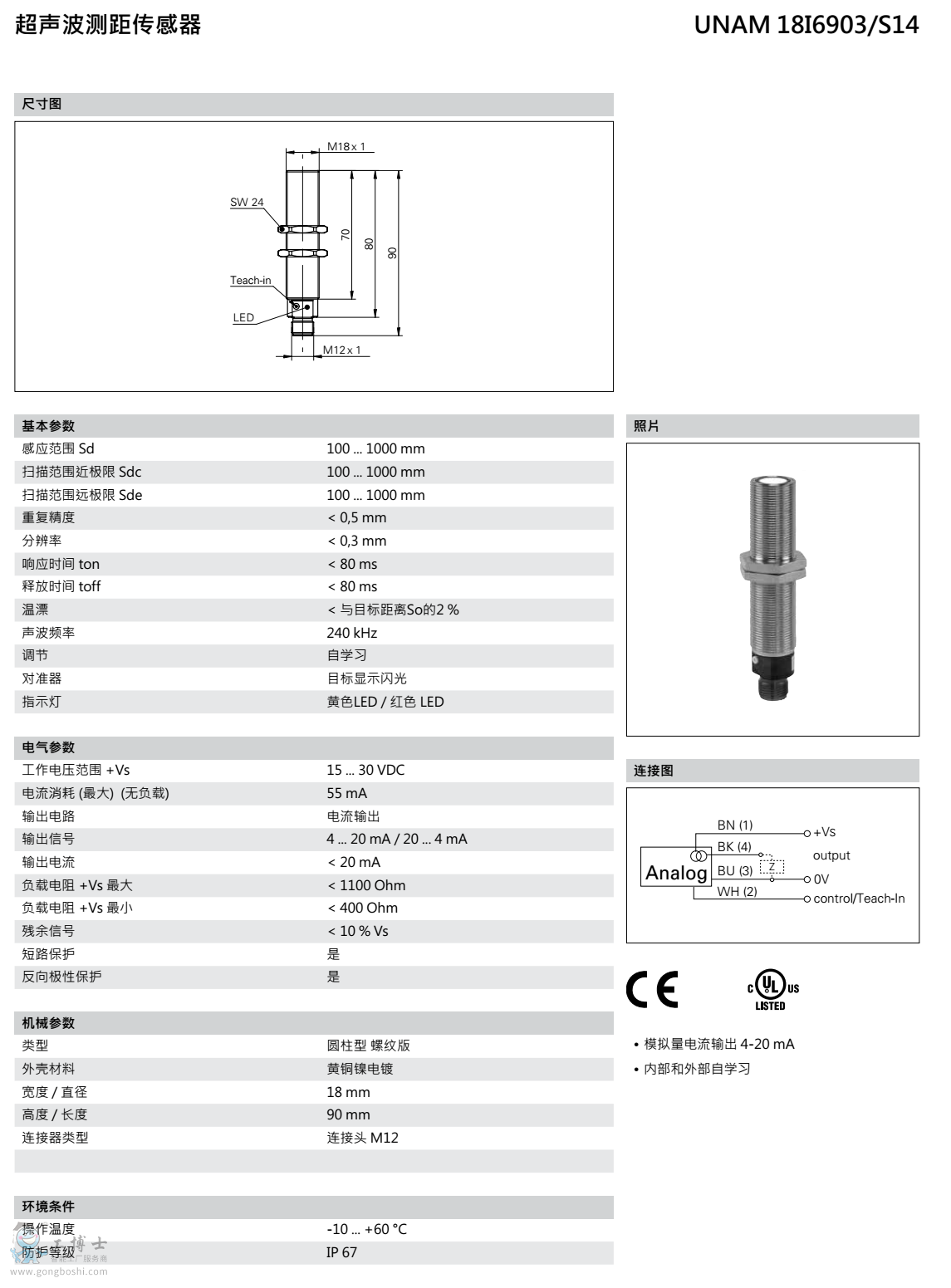 baumer堡盟超聲波測距傳感器UNAM 18I6903/S14開關(guān)傳感器現(xiàn)貨
