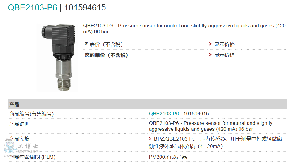 西門子壓力傳感器QBE2103-P6傳感器價格
