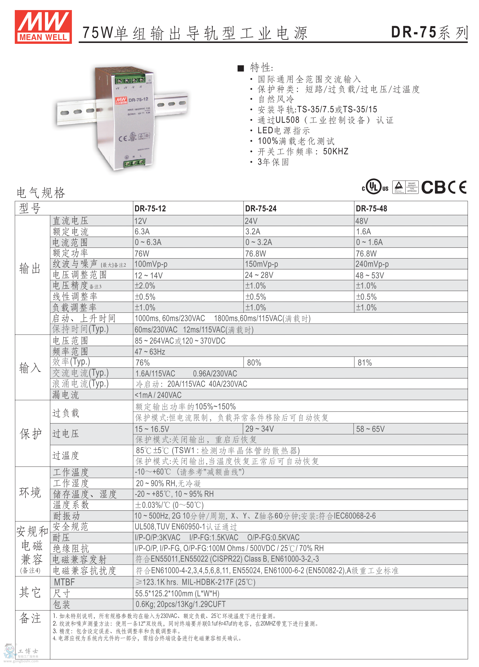 臺灣明緯電源DR-75-48導(dǎo)軌式輸出電源