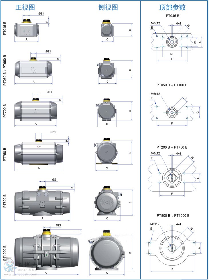 選擇雙氣控執行器時,根據上計算的扭矩值及使用氣源壓力查找雙氣控執行器的扭矩表,就可得到準確AT型號。