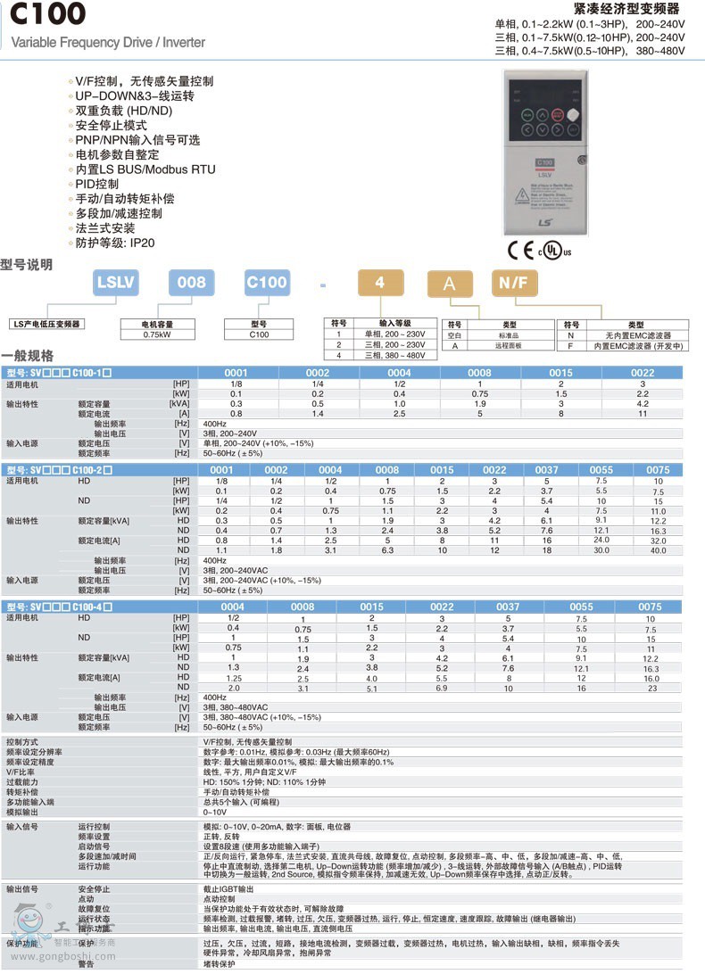 LS產電C100系列SV0037C100-4AN變頻器 帶遠程面板