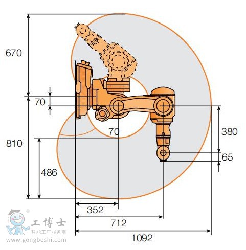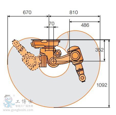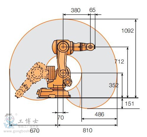 外形緊湊、功能強勁的IRB 140是一款六軸多用途工業機 器人,有效荷重6 kg,工作范圍長達 810mm,可選落地 安裝、倒置安裝或任意角度掛壁安裝方式